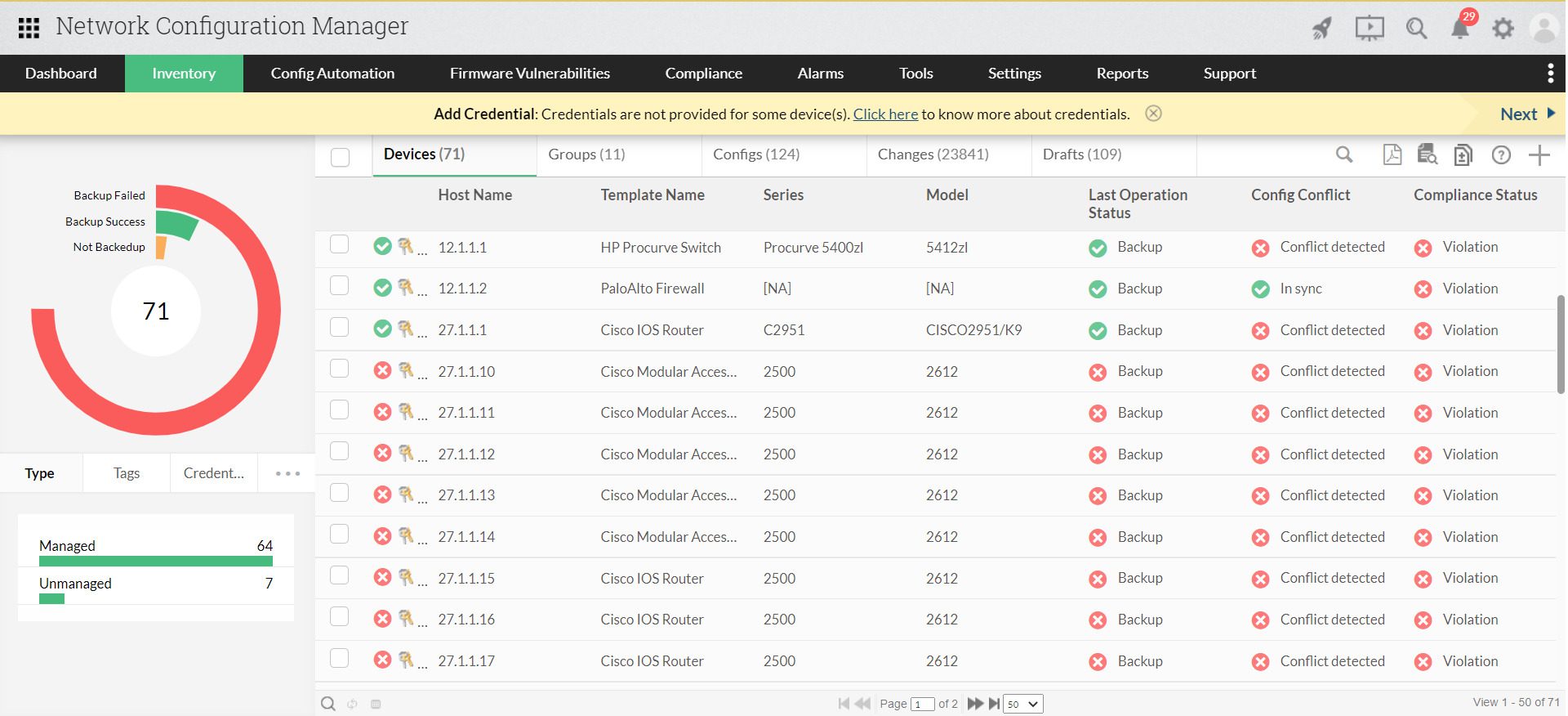 수동으로 각 장치에 로그인하여 펌웨어를 업그레이드하는 대신, Network Configuration Manager는 자동으로 취약한 버전을 필터링하여 한 번에 여러 장치의 펌웨어를 업그레이드할 수 있습니다.